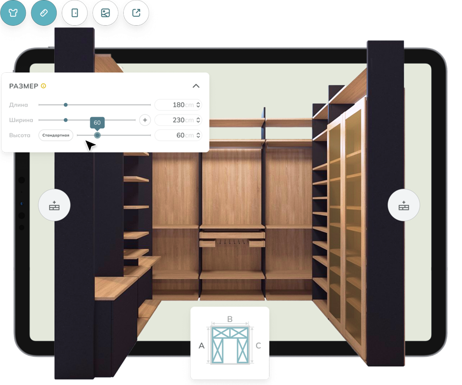 - Возможность для клиентов самостоятельно проектировать шкафы с визуализацией в реальном времени